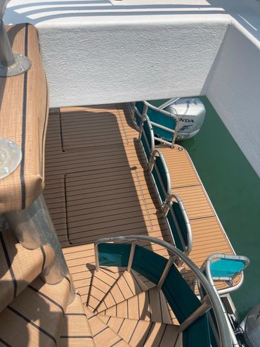 Solus Marine installed 20-year warrantied NautikFlor on this 35 foot Avanti on Smith Mountain Lake. Weighing less than half of real teak, engine strain is never a problem, and each panel bears underlayment which absorbs water and motor noise.